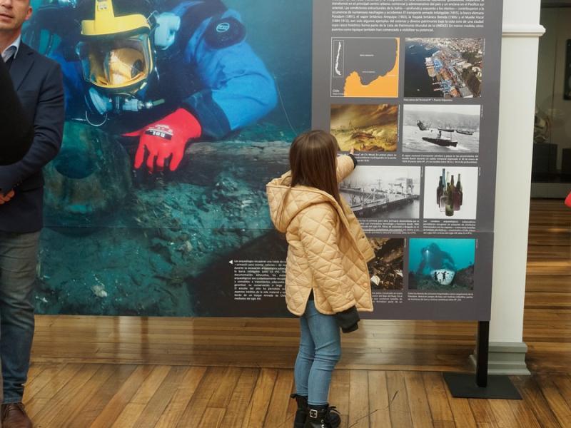 En este sentido, la exposición destaca la diversidad de manifestaciones que conforman el patrimonio cultural subacuático en Chile, cuyo vasto territorio insular exhibe un importante y diverso potencial, que va desde paleopaisajes sumergidos, hasta restos de innumerables embarcaciones naufragadas e infraestructura de los periodos colonial y republicano y que son exhibidas al público a través de nueve paneles de grandes dimensiones.
