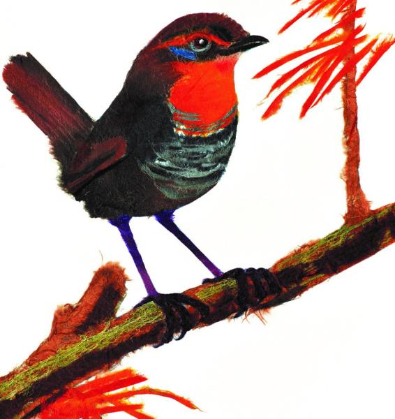 Ossandón utilizo la antigua técnica japonesa del Chigiri-e, la cual consiste en despedazar papel washi que se adhiriere con nori (pegamento natural de algas), y de esta forma plasmar y conseguir figuras o dibujos, creando textura en forma de collage para lograr un colorido similar a la acuarela. Son mas de cuarenta cuadros que nos presentan la diversidad ornitológica de nuestro país.