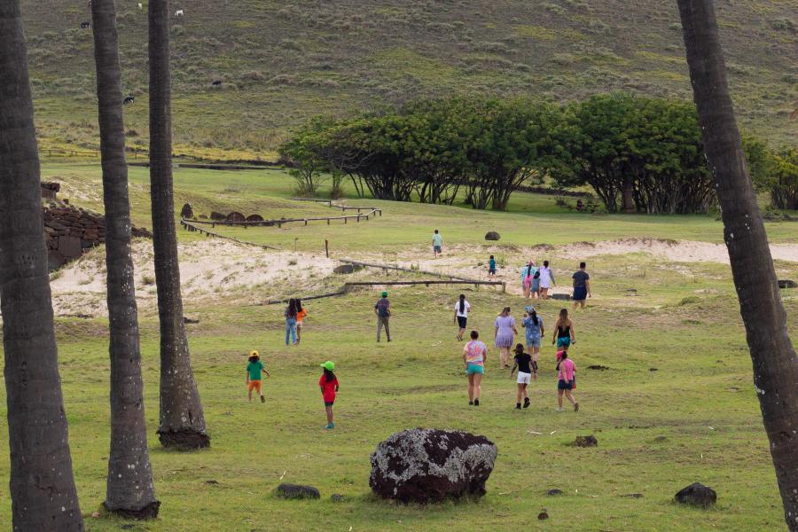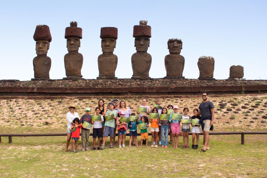 La segunda salida se realizó junto al destacado guía de turismo Tito Atan en Ara o te Mōai. Aquí pudieron aprender sobre el traslado de los Mōai desde la cantera hasta los diferentes puntos en el que hoy se sitúan. Los niños y niñas pudieron tener un acercamiento reflexivo sobre las diferentes teorías que existen respecto al desplazamiento de nuestras gigantes piedras.