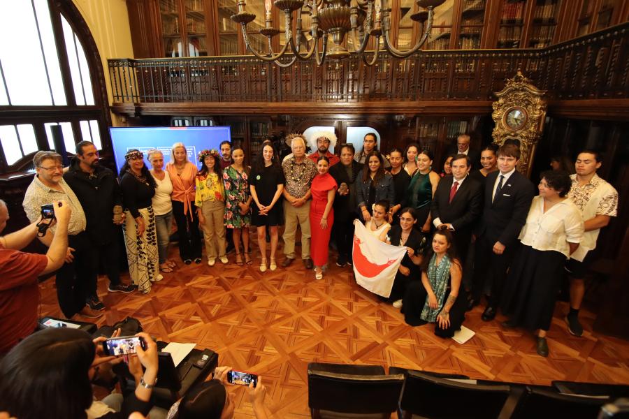 En el acto participaron la delegación del pueblo rapanui que viajó hasta Noruega para repatriar a sus ancestros y representantes del Museo Kon-Tiki, donde permanecían desde la segunda mitad del siglo pasado. Ambos grupos acompañarán el regreso de los Ivi Tupuna a la isla, este sábado 16 de noviembre, cuando la comunidad los reciba masivamente en el Aeropuerto Internacional Mataveri.