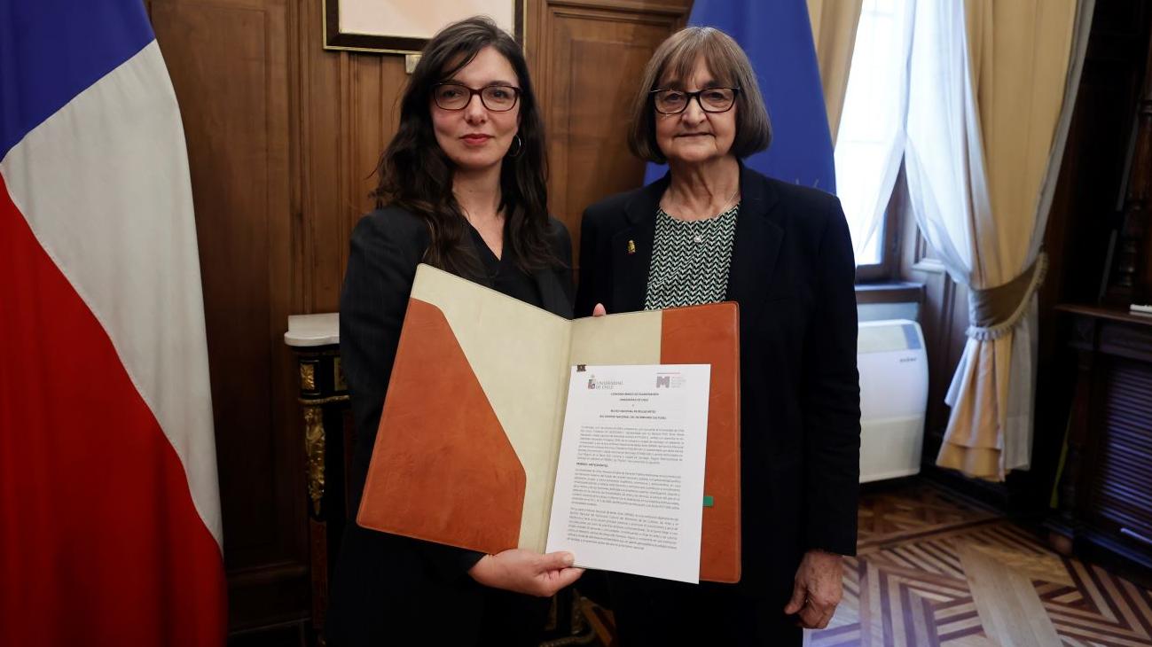La directora MNBA, Varinia Brodsky junto a la rectora de la Universidad de Chile, Rosa Devés. Foto: Alejandra Fuenzalida, prensa U. de Chile.