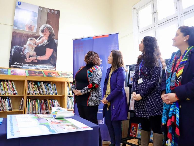La Directora de la Biblioteca Francisca Araneda, junto la Seremi Salud de la región Lorena Cofré Aravena, a Mónica Riveros Directora de Salud de la Corporación Municipal Valparaíso y a Salvador Ángulo Director Regional del Servicio Nacional del Patrimonio Cultural, participaron de este importante hito en el marco de la Semana Mundial de la Lactancia Materna, donde la Comisión Regional Intersectorial de Lactancia Materna otorgó esta doble certificación a la Biblioteca Santiago Severin.